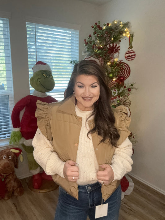 The Madison Pearl Embellished Cable Sweater Hoodie Vest