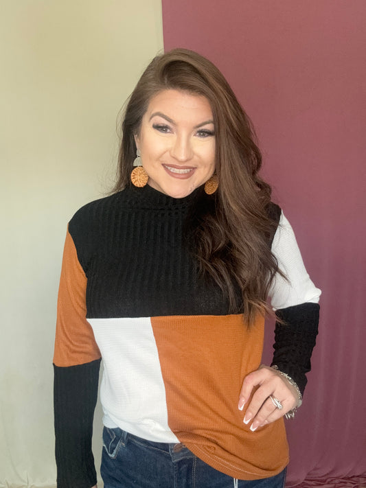 Sold outThe Tri- Color Mockneck Emire Top