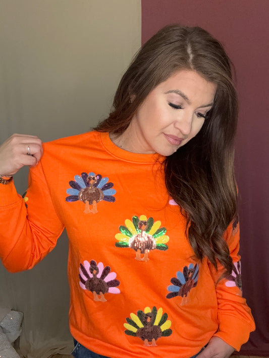 Sold outThe Orange Turkey Sequin Sweater